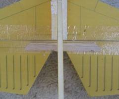 Die Formverstärkung von Rumpf und Tragflächen mit Hilfe einer eingezogenen Schnur mit Verklebung ist eine neue Idee, die in Bezug auf das Gewicht ihren Vorteil hat, und außerdem sehr preiswert ist.