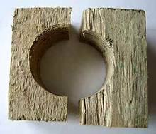 Wie aber jetzt das Motorschild aus Aluminium aus dem Stator drücken? Dazu habe ich mir ein Werkzeug gebaut. Ein Stück Dachlatte mit einem 21-22 mm Holzbohrer durchgebohrt, dann mit der Säge in zwei Teile zersägt. Dann den Stator bündig in den Holzklotz plaziert und im Schraubstock geklemmt. Mit einem 7 mm Bohrer (Einspannseite) im Kugellagersitz kann man dann vorsichtig mit einem Gummihammer das Motorschild herausdrücken. Damit war der Stator frei zum abwickeln.