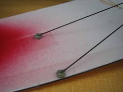 Zuerst wird die zu kontaktierende Fläche mit transparentem Packband großflächig (circa 5 x 5 cm) überklebt. Aus der PVC-Schaumplatte wird ein 1 cm2 großes Stück herausgeschnitten und mit einem 1,5 mm Bohrer schräg angebohrt, dass der Kohlefaserstab halb eingebettet wird. Dann wird auf die Tragfläche, mit dem Kohlefaserstab als Maßstab, diese Platte mit Uhr-Por aufgeklebt, siehe Bild rechts oben.