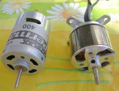Am Anfang war der ganz normale Bürstenmotor (Bild, links) mit dem ganz normalen NiCad Akku und dem ganz normalen Regler. Es war toll und es ging leidlich, aber der Spaß wurde weniger. Die konventionellen Motoren waren einfach zu schwer für Parkflyer. So in 2004 und 2005 kamen die bürstenlosen "kleinen Drehstrom-" Motoren (Bild, rechts) in preiswerte Regionen und jetzt gehts los. Und dann kam der Twinstar II mit zwei allerwelts 400ern im Paket für schlappe 80 Euro.