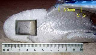 Jetzt sollte der Schwerpunkt circa 30 mm hinter der Flügelvorderkante liegen (CG = Center of Gravity = Schwerpunkt). Das Gesamtgewicht ist jetzt 19,9 Gramm.
